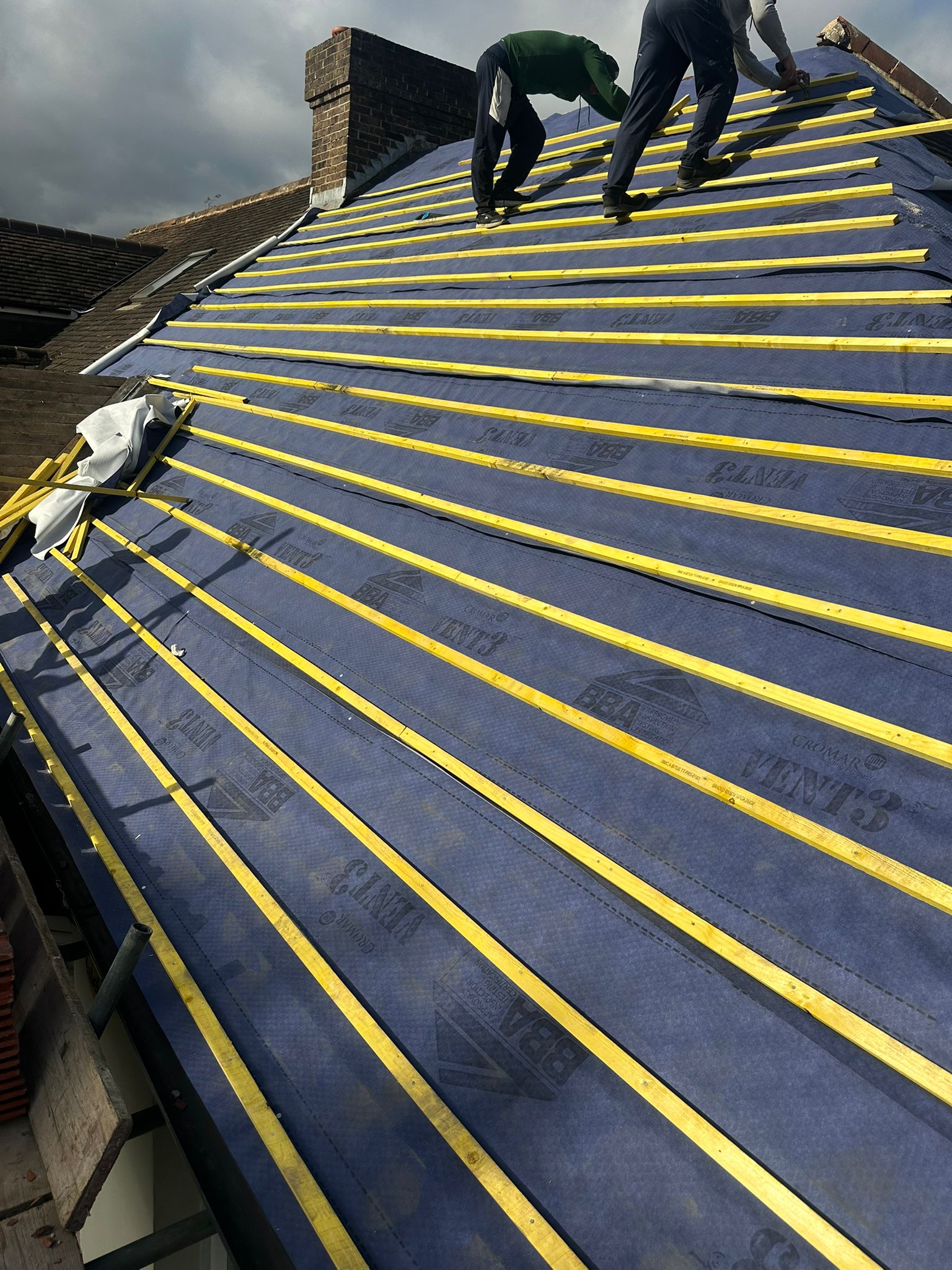 To enhance the roof’s performance, we specified the use of a new breathable felt membrane to improve ventilation and prevent condensation within the roof space. We also installed treated wooden battens to serve as secure anchor points for the new tiles, ensuring a solid and even structure.